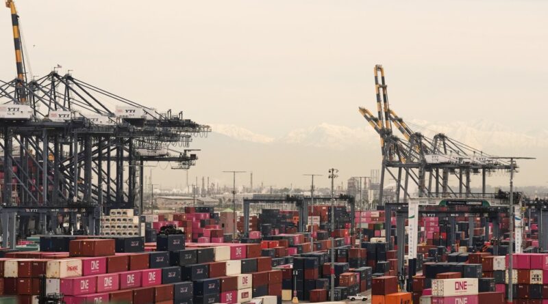 Read MoreContainers are stacked at the Port of Los Angeles on Friday. Damian Dovarganes/AP hide caption toggle caption Damian Dovarganes/AP The
