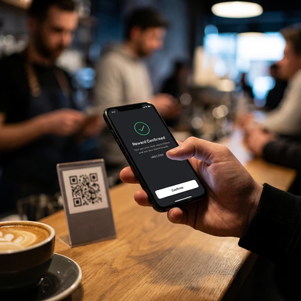QR codes can appear at participating locations such as restaurants, retail stores, events, and other businesses. When you scan, the platform can verify real-world presence at that location, which is valuable for advertisers and partners running campaigns.