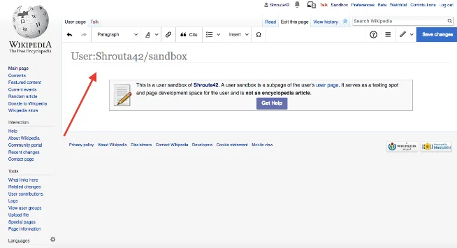 At this stage, it’s best to write your draft in a Wikipedia Sandbox. As mentioned earlier, this is a personal workspace where you can draft safely, revise freely, and share the link with others for informal feedback without accidentally publishing anything live.