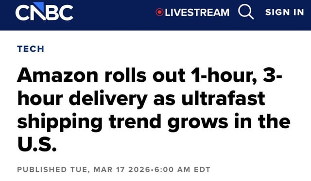 Amazon FBA Amazon 1 hour delivery roll out March 20, 2026 Monkey 0 View 0 Comments submitted by /u/ZeeBaws [comments] #Amazon #hour #supply #roll